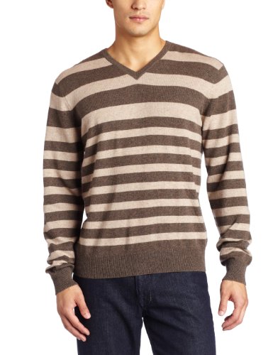 @@@ Product Details : Williamson Mens 100% Cashmere Long Sleeve V Neck Stripe Sweater, Brown Combo, Small