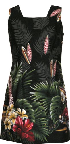 Today Deal : Short Tank Dress - Tropical Surfboard Woodie A-Line Hawaiian Aloha Darted Tank Dress in Black - S