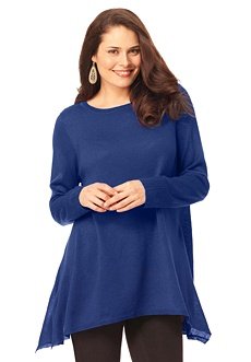 Buy Now! Woman Within Plus Size Hanky Hem Pullover Sweater (Dark Navy,2X)