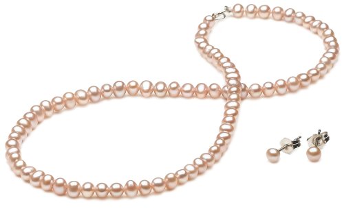 Review : Pink Freshwater Cultured Pearl Children's Necklace and Earring Set with Sterling Silver Clasp (4-4.5mm), 13"